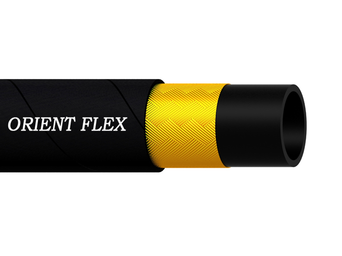 SAE 100 R1 steel wire reinforced hydraulic hose is suitable for hydraulic hose and usual industrial systems. It can bear higher working pressure than other rubber hoses thanks to its high tensile braided steel wire reinforcement. It is composed of three parts: tube, reinforcement and cover. The tube is made from oil resistant synthetic rubber, making the hose have excellent performance in delivering oils. The reinforcement is made from one layer of high tensile braided steel wire, making the hose have outstanding high pressure resistance. The cover is made from high quality synthetic rubber, making the hose resistant to abrasion, corrosion, weather, ozone, aging, sunlight and cut. Therefore, it has longer service life.