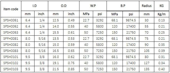 Paint Spray Hose Temperature range: -40℃ (-40 °F)   -  100℃ (+212 °F)max temperature recommended for water base hydraulic fluids and air : +70℃ (+ 158°F)
